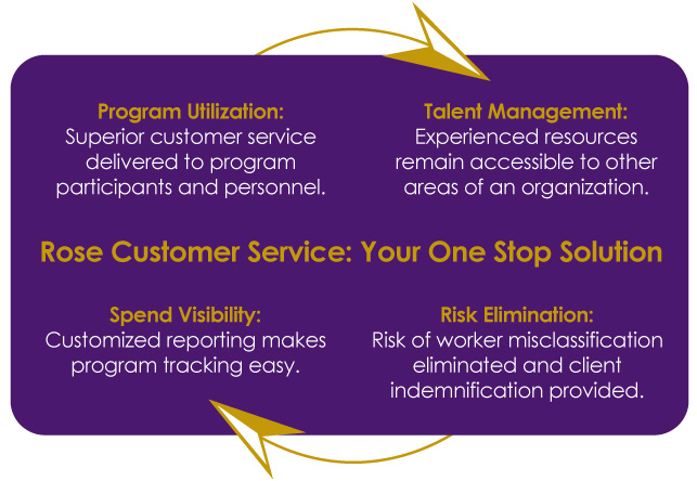Rose lnternational's Named Resource On-boarding/ Payroll Program delivers a proven model and methodology that ensures effective engagement for both our resources and clients. We offer a streamlined yet tailored approach without compromising compliance with the following three categories: